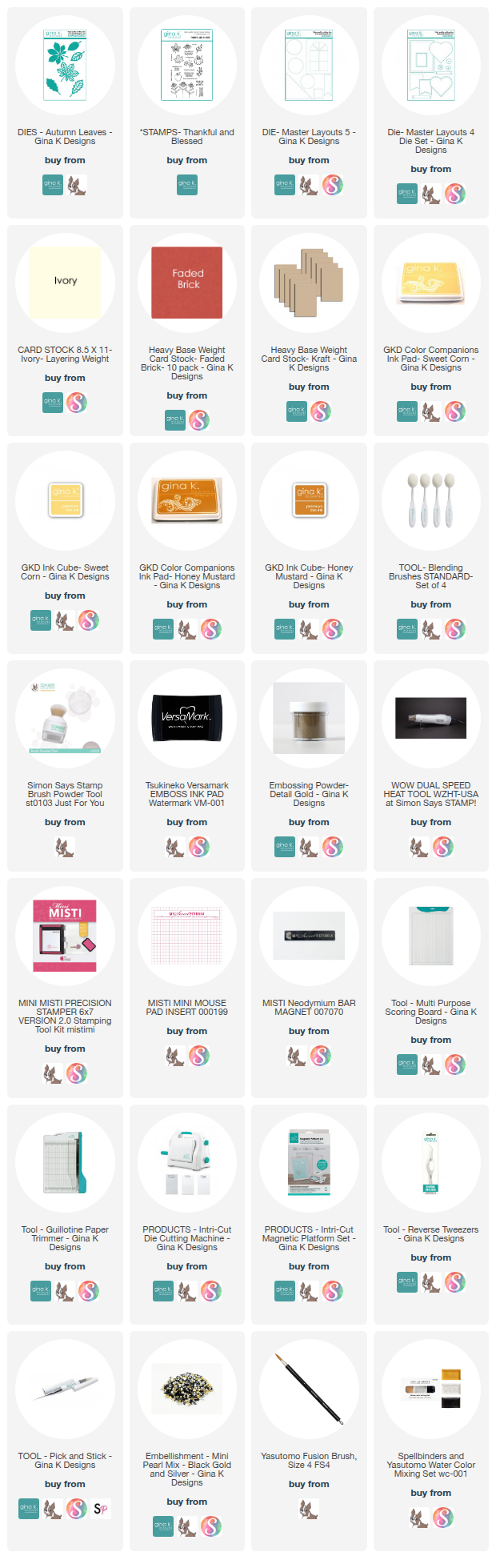 My card features the Autumn Leaves die set along with a sentiment from the NEW Thankful and Blessed stamp set from Gina K Designs.