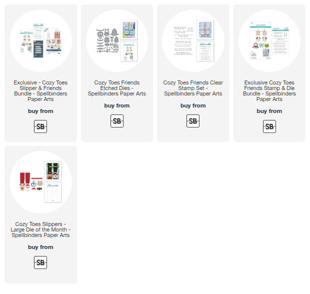 Have you heard the news?! Spellbinders just released an add on to the Cozy Toes Slippers Large Die from October 2024. It’s called Cozy Toes Friends! There are five new slipper add-ons in the set and there is even a coordinating sentiment stamp set available. The Cozy Toes Friends Dies and Stamp sentiments are available for early access for Club Members, and on Nov 6th for everyone.