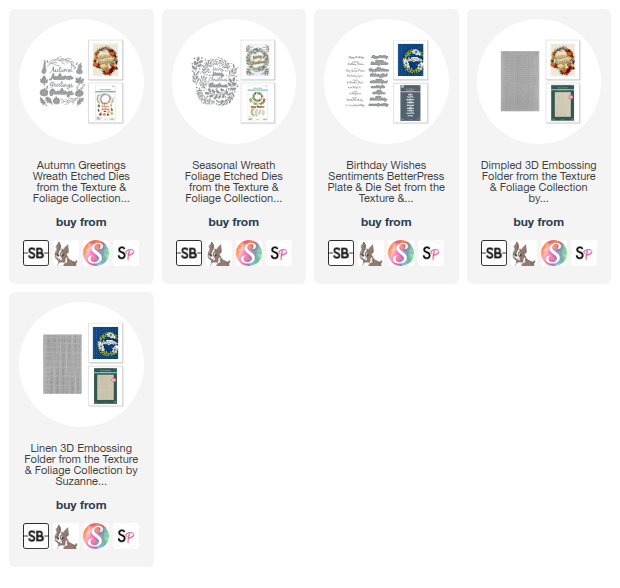 Today cards feature Spellbinders NEW Texture & Foliage Collection by Suzanne Hue. This is an extension to her imperviously released Beautiful Wreaths Collection.